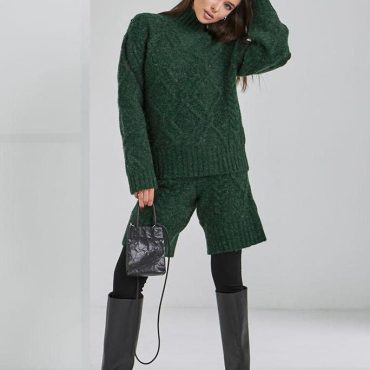 Merino Wool Mohair Knit Set Sweater And Shorts