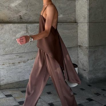 Silky Two Piece Set Women Wide Leg Pants